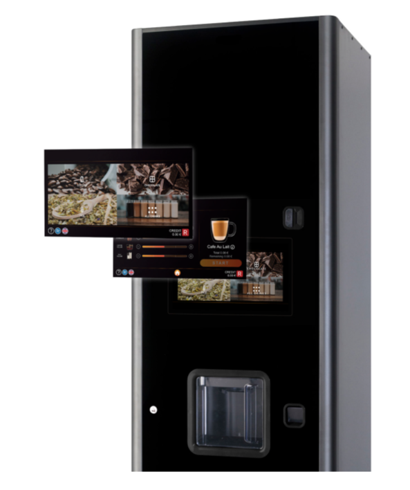 La máquina vending Free Standing de producto soluble de 5 tolvas con mayor capacidad del mercado. Gracias a su autonomía de 700 vasos y a su equilibrio de producto alcanza hasta un 88% más de autonomía que otras máquinas de su segmento.